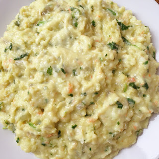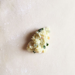 Dann alles miteinander vermischen und abkühlen lassen. Wichtig ist, dass die Füllung cremig und nicht all zu flüssig von der Konsistenz her ist. Sonst wird es nachher bei der Herstellung der Teigtaschen etwas schwierig, bzw. macht es unmöglich.