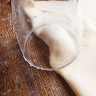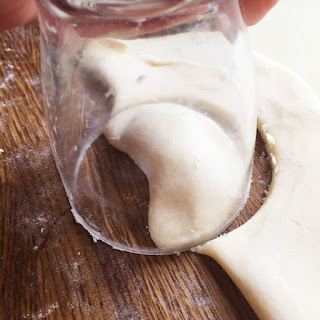 Mit einem kleinen Glas einen Halbmond ausstechen (die Öffnung des Glases sollte nicht einen all zu grossen Durchmesser haben).