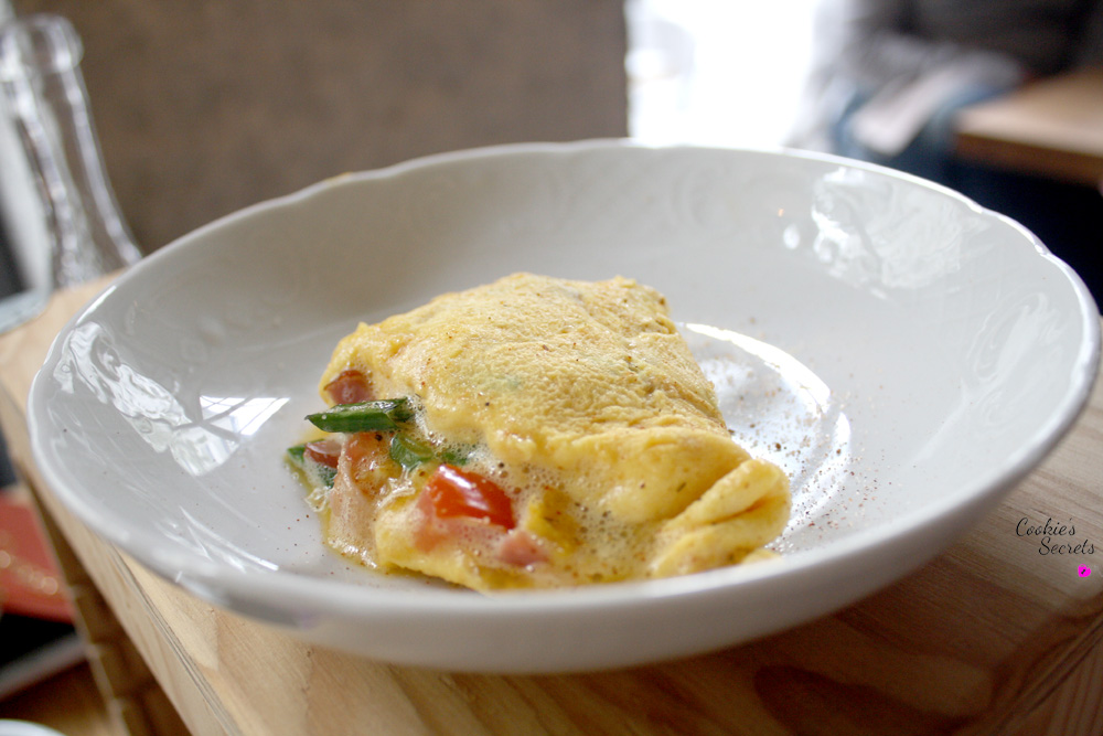 Jeder Tisch ist liebevoll gedeckt und mit einer „Brunchkiste“ ausgestattet, die all das enthält, was man zum starten braucht: Konfitüre, Butter, Müesli sowie Milch und hausgemachten Ingwer-Rhabarber-Sirup <3 Ich liebe kalten Kaffee (zu jeder Jahreszeit), nur leider gibt es nicht viele Restaurants die das führen. Mein Wunsch wurde aber erhört, und ich bekam einen super leckeren kalten Kaffee mit ganz viel Milchschaum. Säfte könnt ihr an der Bar selber holen. Es gab hausgemachten Smoothie, Orangen- und Ananassaft. Mein Fave war der Orangensaft mit Fruchtfleisch, so wie ich es mag 🙂