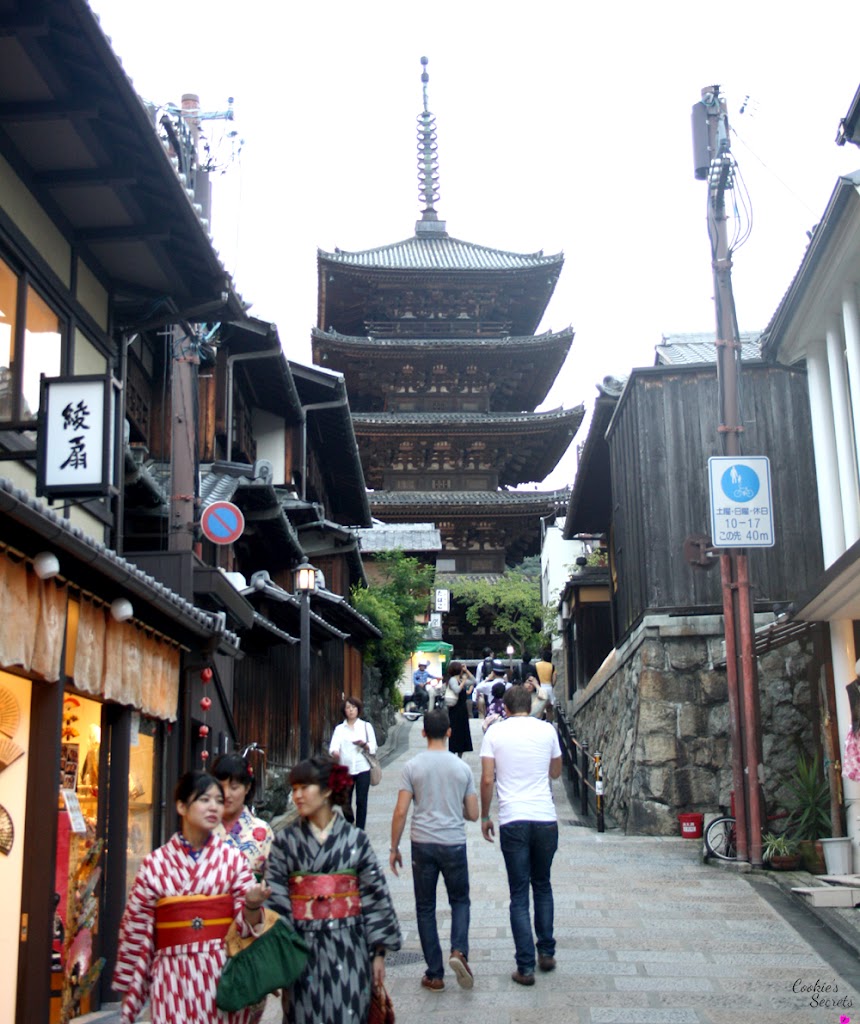 Das ist das Geisha-Viertel von Kyoto. Das interessante ist, dass dort wirklich ca. jede 3. Frau als Geisha rumläuft! Mir war auch klar weshalb, nachdem ich den ersten Kostüm-Verleih sah 😀 (Preis ab CHF 30.-) Ich habe mir das Viertel schöner vorgestellt, muss ich ganz ehrlich sagen. Irgendwann sind wir in ein kleines Gässchen abgebogen und haben endlich den Charme dieses Quartiers entdeckt. Die Abenddämmerung hatte schon begonnen, so dass ich es nicht mehr fotografisch schön festhalten konnte. Haltet euch von der Hauptstrasse fern, dann können sich richtige Schätze auftun.