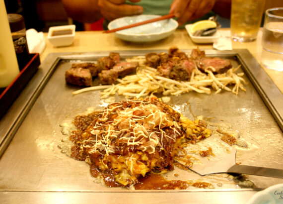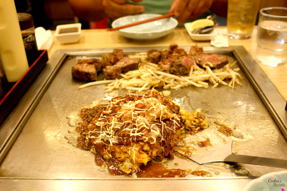 Dieses Restaurant ist im Food Court Bereich im Untergeschoss des Hauptbahnhofes von Kyoto. Es war auch das einzige Restaurant mit einer Warteschlage davor. Da wir nur zu zweit waren, kamen wir noch vor den Familien und Gruppen dran, deshalb hielt sich die Wartezeit in Grenzen. Die Warterei lohnt sich aber! Die Hausspezialität Okonomiyaki ist so was zu empfehlen! Das sind eine Art salzige Pancakes in verschiedenen Sorten. Ich hatte es mit Schweinefleisch Bonitoflakes (Thunfischflocken) probiert <3 Das Essen wird fertig gekocht auf der heissen Platte auf dem Tisch serviert.