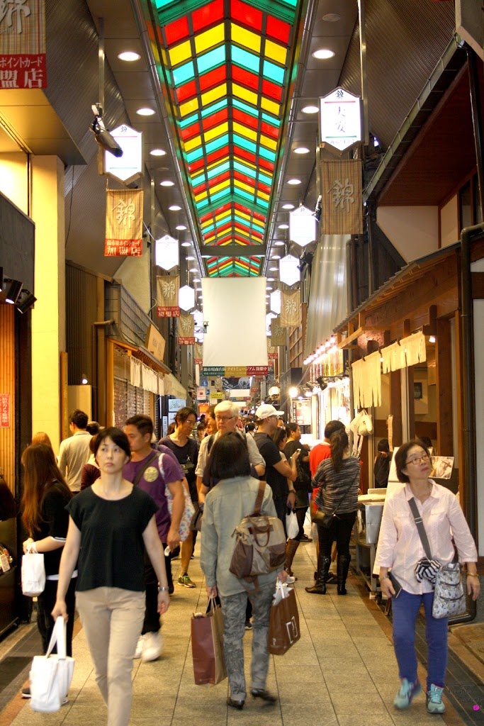 Dainaru ist ein nobles Einkaufszentrum, etwa 2 Gehminuten vom oben erwähnten Nishiki Market. Im Untergeschoss befindet sich ein riesiger Delikatessen „Supermarkt“. Vieles ist schon gekocht, ihr könnt also Salate, Sushi und warme Speisen nach Gewicht kaufen – ähnlich wie Tokyo Food Show, von dem ich euch im Tokyo-Blogpost erzählt habe. Ziemlich teuer alles, aber ich hätte mich einmal komplett durchprobieren können. Die Speisen sind sehr ansehnlich und was wir probiert haben war richtig, richtig gut! Ach…, wenn ich mich bloss zurückbeamen könnte 😉