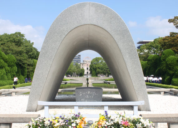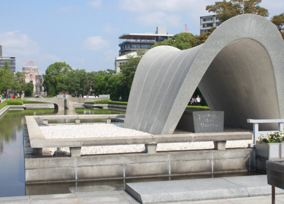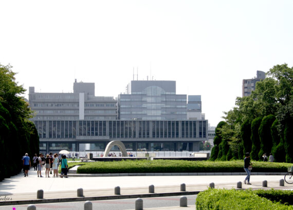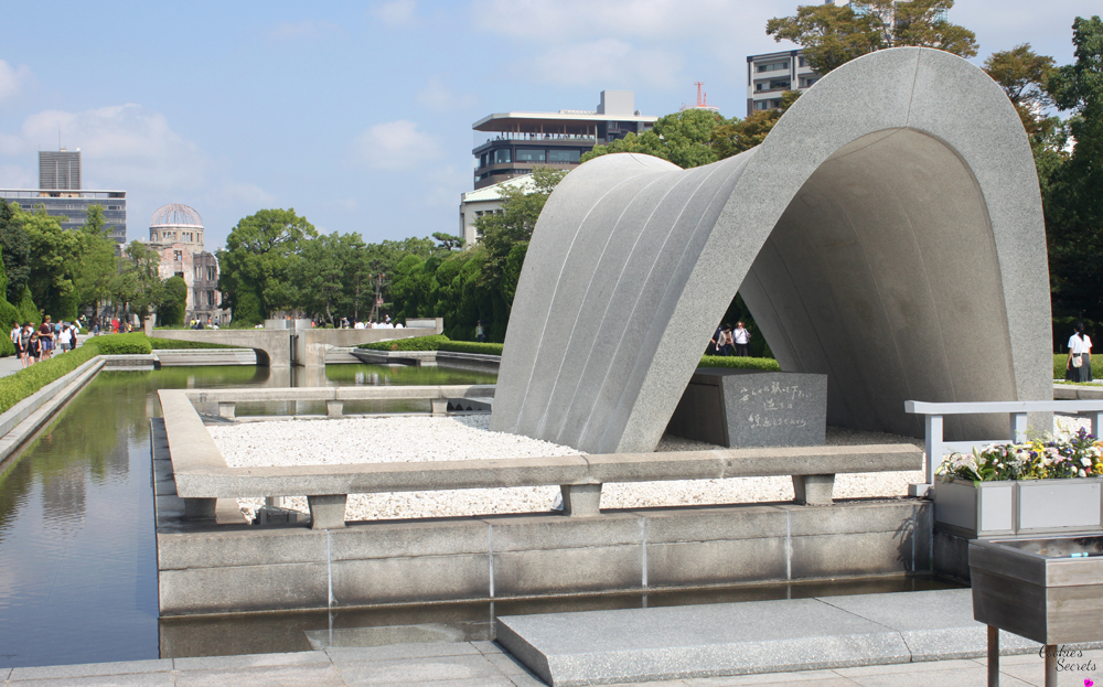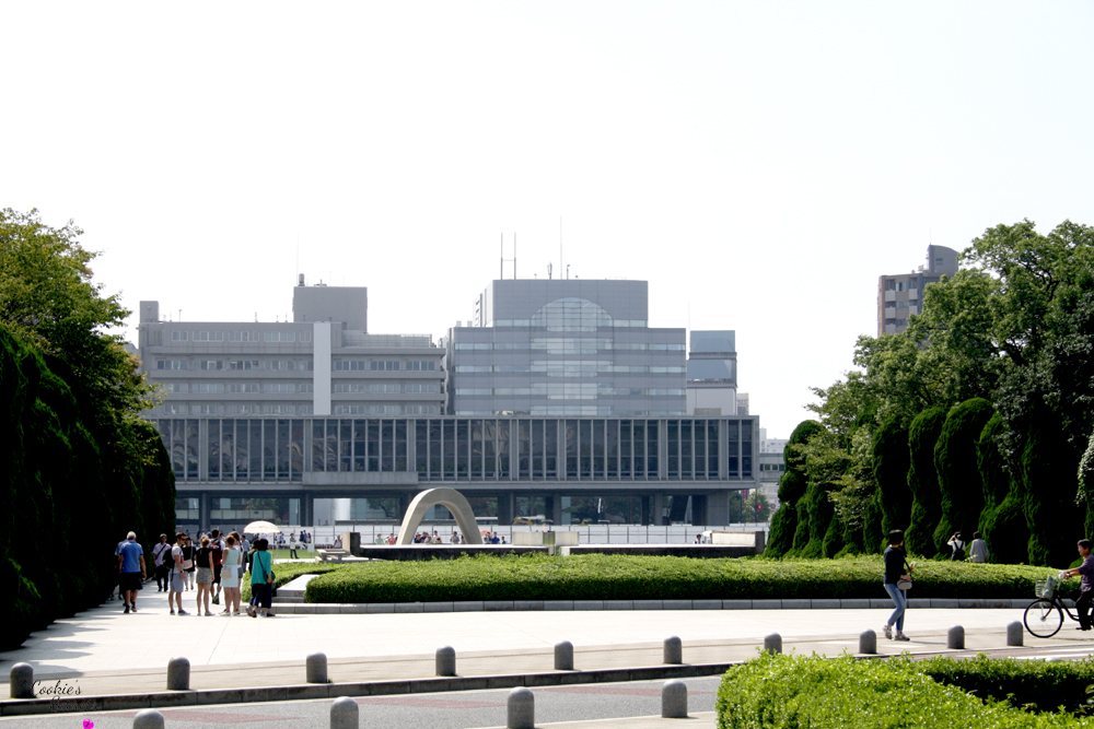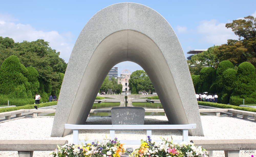 Auf dem Weg zum Friedensmuseum, nur wenige Gehminuten weiter, erreicht ihr den Friedenspark (Peace Memorial Park) mit vielen Denkmälern. Das bekannteste ist wohl die Flamme, die bereits seit 1964 brennt und nicht erlöschen darf solange es auf dieser Erde noch Atomwaffen gibt. Im Kenotaph (leeres Grab) liegt eine  Liste aller Opfer. Wenn man durch den Bogen des Kenotaphs blickt, sieht man in einer Linie die Atomkuppel und die Friedensflamme.