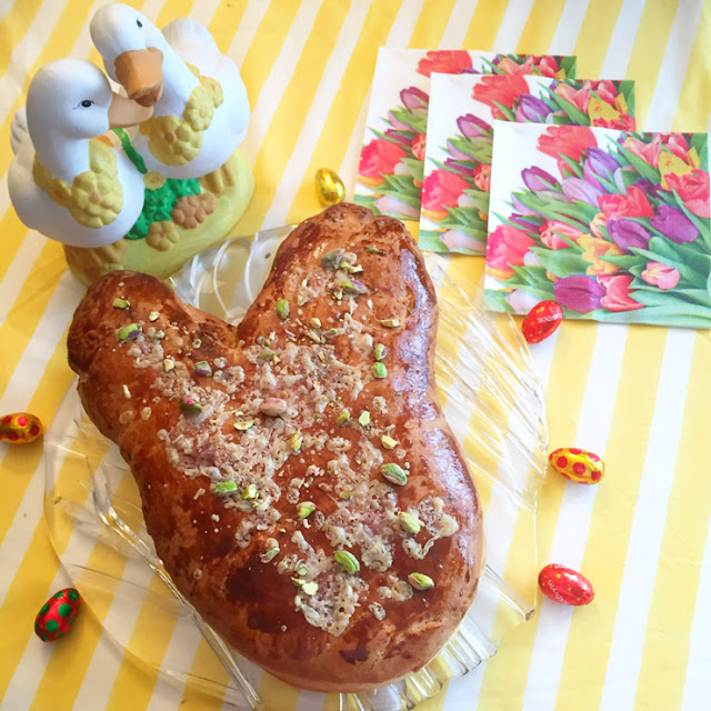Ich backe ja sehr selten Brot, obwohl sie mir eigentlich ziemlich gut gelingen, wenn ich sie mal backe… Für das Karfreitag-Frühstück wollte ich einen Zopf backen, aber fand ich den Aufwand für einen „normalen“ Zopf dann irgendwie zu gross. Darum dachte ich mir, ich mache mal einen speziellen Zopf mit einer Füllung aus Käse, Pistazien und Kräuter der Provence (die Kräutermischung liebe ich sowieso über alles :-D) Ich muss sagen, diese Kombi ist sehr lecker geworden! Auch wenn der Osterhase etwas unförmig und unproportional aussieht :-)))
