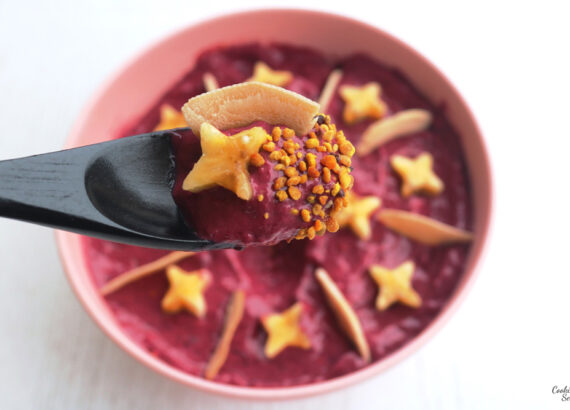 Ich bin mittlerweile richtig Fan dieser Açai-Bowls geworden. Es schmeckt wie eine süsse Sünde, aber sättigt und ist gesund. Toll, oder? Einmal habe ich zu viel zubereitet und probehalber eingefroren. Am nächsten Morgen habe ich es im Kühlschrank auftauen lassen und bis zum Mittag hatte es die gewollte cremig-gefrorene Konsistenz. Wie ihr seht könnt ihr die Açai Bowl (ohne Fruchtgarnitur) einfrieren, am Vorabend in den Kühlschrank stellen und am Morgen zum Frühstück geniessen.