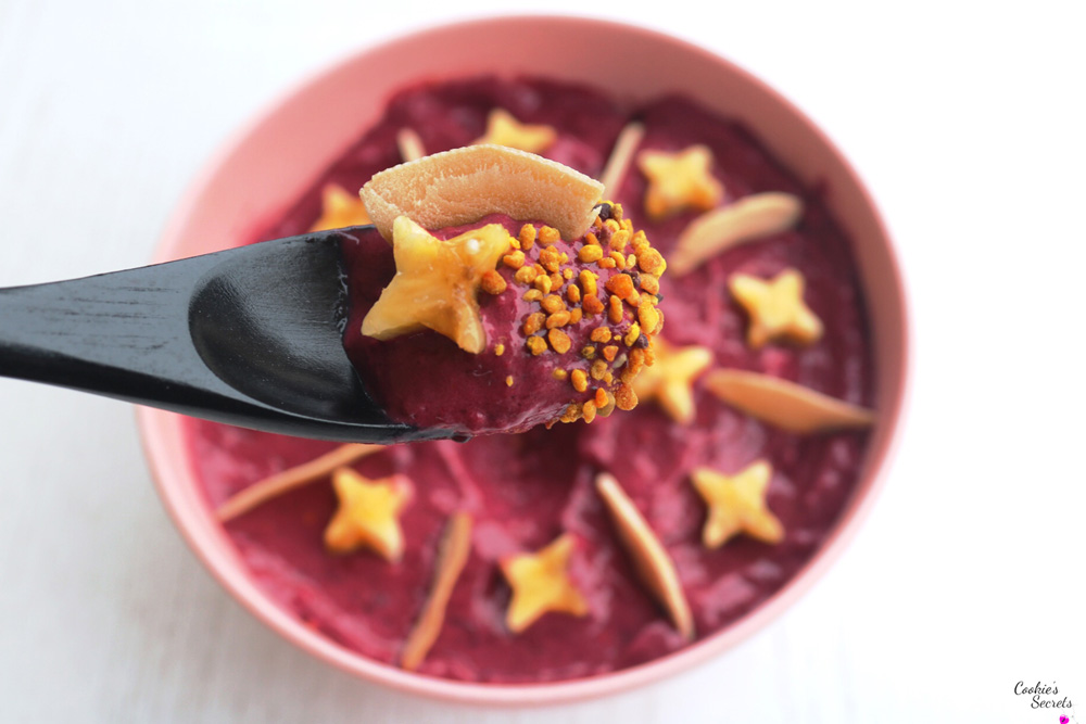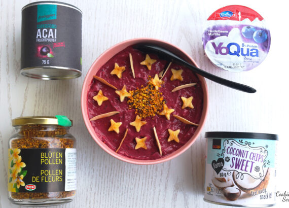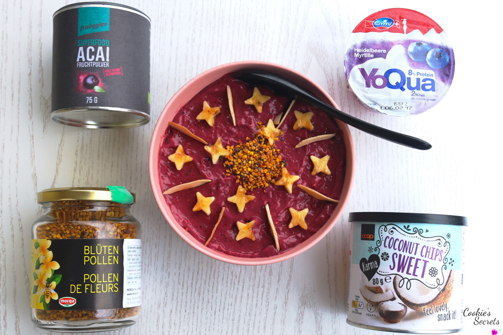 Wie ihr seht habe ich die Bowl nicht zusätzlich mit Zucker gesüsst. Das Frucht-Yoqua, die Blütenpollen und Coconut Chips geben meiner Meinung nach genug Süsse.