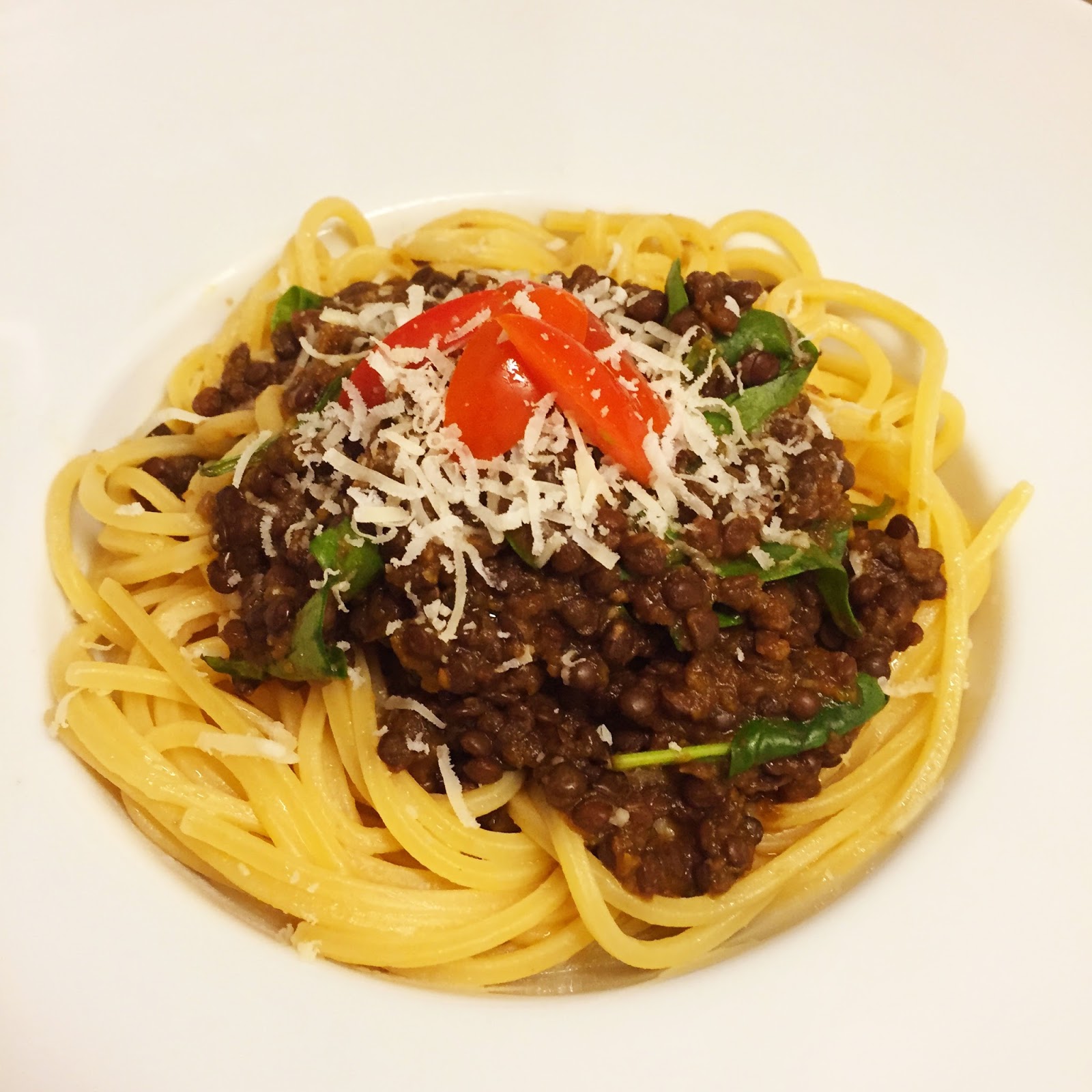 Pasta, Pasta, Pasta..!! Wer mag das nicht?! Es gibt doch so Tage, da muss einfach ein grosser Teller leckere Spaghetti Bolognese her, nicht? Spaghetti und Sugo sind ja eigentlich immer vorrätig, aber was tun, wenn man kein Hackfleisch im Kühlschrank hat? Ich weiss nicht wie es euch geht, aber ich finde „nur“ Spaghetti mit Tomatensauce ziemlich langweilig. Für so Fälle am Besten ne Packung Linsen griffbereit haben, denn diese Linsen-Bolognese ist eine leckere Alternative zur beliebten Fleischvariante!